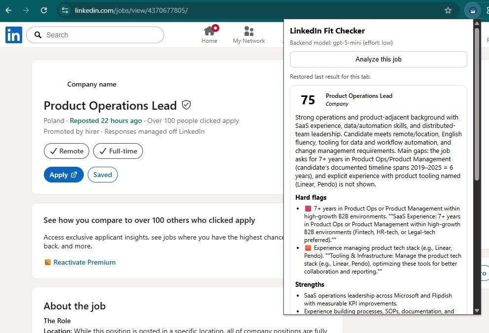 AI-Powered LinkedIn Job Fit Analyzer Chrome Extension